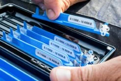 Voor elke onderlijn zijn KKM-B haken gebruikt, die geknoopt zijn
